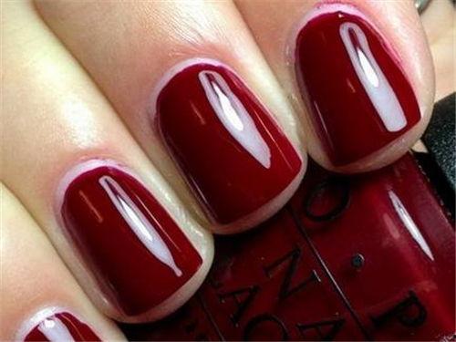 2. 酒红色:酒红色比正红色更加低调,给人一种成熟、优雅的感觉。搭配金色或者银色的装饰,让你的美甲更加高贵。