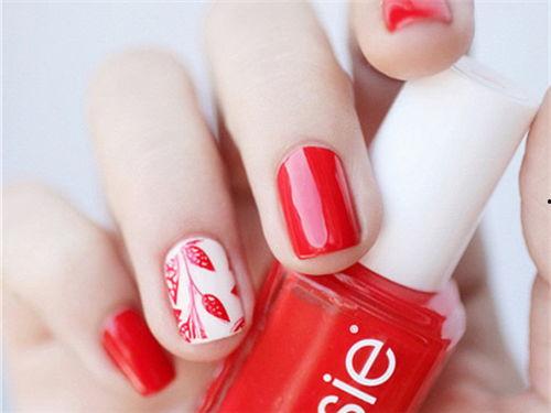 3. 樱桃红:樱桃红是一种介于正红色和酒红色之间的颜色,既活泼又优雅。搭配花朵图案,让你的美甲充满春日气息。